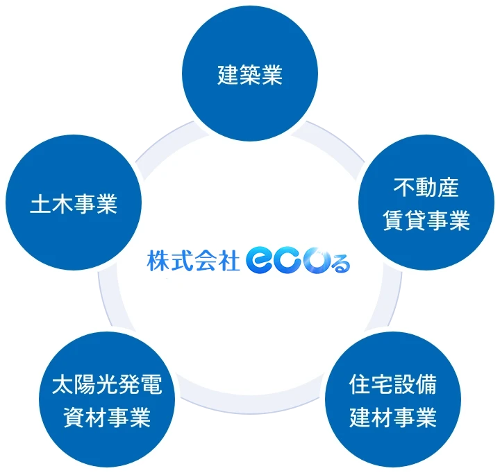 私たち株式会社ecoるは不動産や建築、太陽光発電の提案まで幅広くかつ総合的に事業展開をしております。